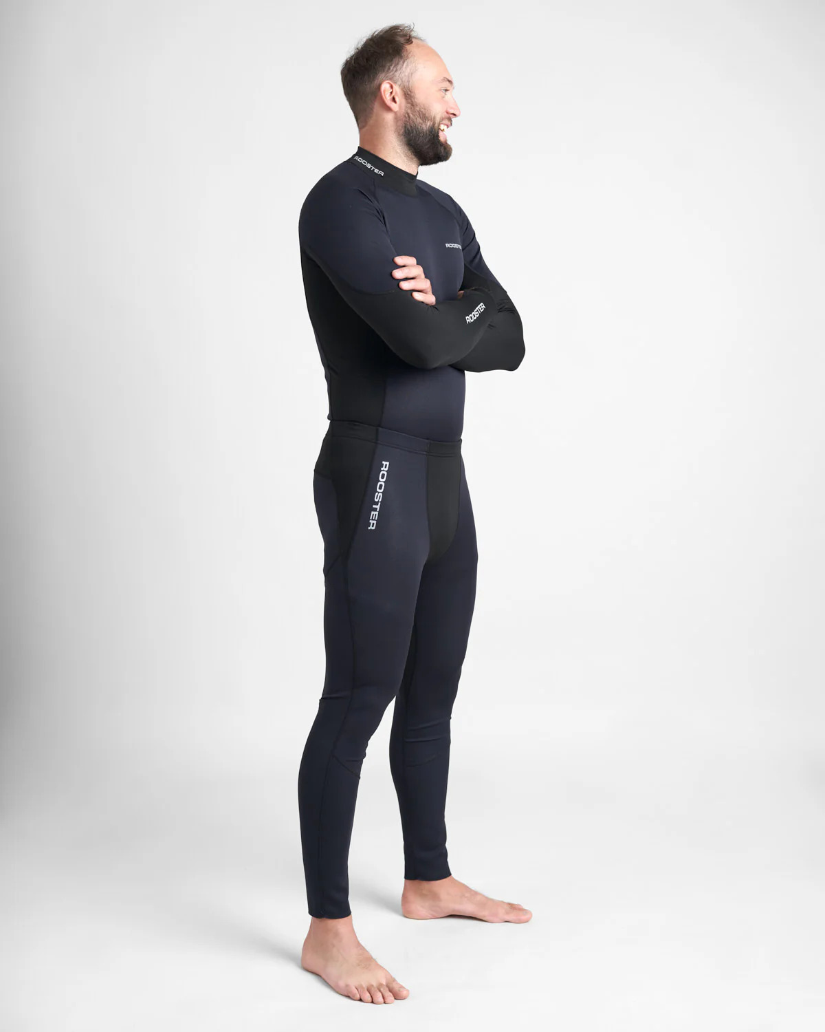- Neopreno “Hot” de 0,5 mm con revestimiento de titanio en la parte superior delantera de las piernas, el asiento y la parte posterior de las piernas
