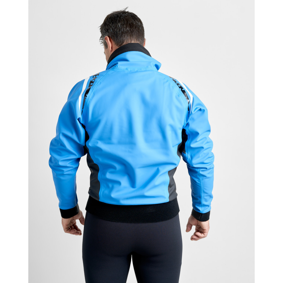 Las costuras selladas protegen contra la entrada de agua y, cuando se combinan con cierres de neopreno en las muñecas y la cintura, un cuello ancho de lana y un cierre de cordón elástico en el cuello, ofrecen la prenda superior semiseca definitiva para la protección en los climas más duros.